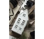 Valkoinen kodikas lyhtytalo tanskalaiselta valmistajalta IB Laursenilta. Stillenat-sarja. 8,3x19x11,5 cm.