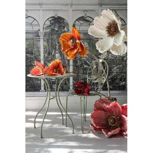 Kukka on valmistettu paperista ja sen varsi on rautaa, mikä tekee siitä kevyen mutta tukevan. Taivuteltava varsi mahdollistaa halutun muodon ja asettelun. Herkkä vaaleanpunainen sävy tuo sisustukseen lämpöä ja eleganssia, ja se sopii niin moderniin kuin klassiseenkin kotiin.