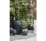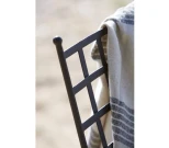 Tyylikäs musta tuoli, jossa on kestävä rakenne. Sopii täydellisesti ruokapöydän ääreen tai lisäistuimeksi ulkokäyttöön.
