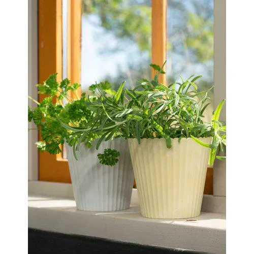Tyylikäs valkomeleroitu ruukku 100 % kierrätysmuovista – kestävä ja ajaton valinta kotiin, parvekkeelle tai terassille.
