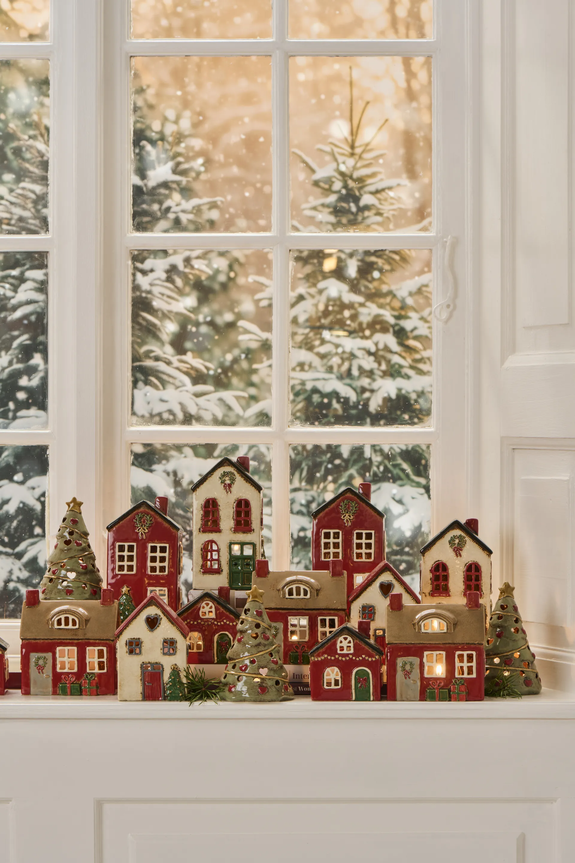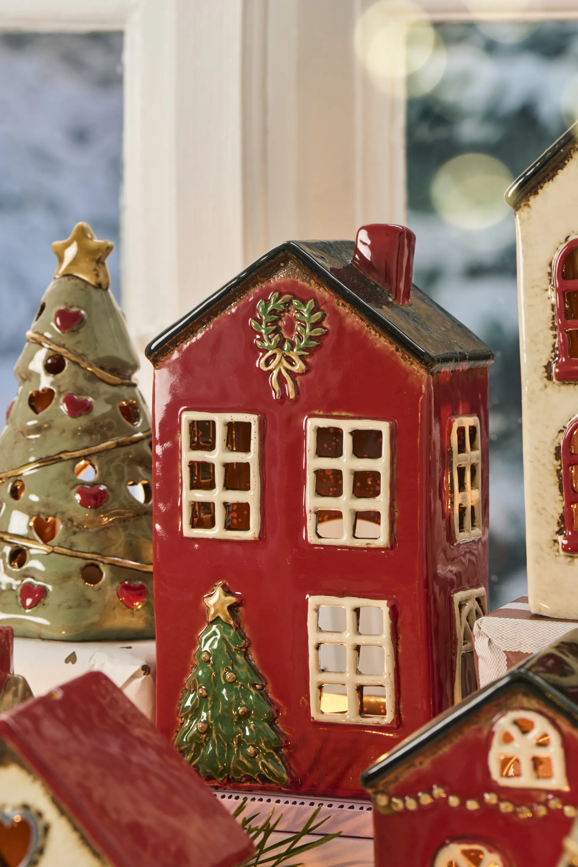 Tämä viehättävä kynttilälyhty, joka on muotoiltu pieneksi punaiseksi taloksi, luo sekä valoa että tunnelmaa. Aseta tuikku sisälle ja katso, kuinka ikkunat valaisevat kuin oikeassa joulutalossa.